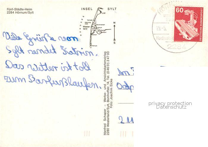 73119726 alte Postkarte Hoernum Sylt Fliegeraufnahme Fuenf-Staedte-Heim postalisch gelaufen Erhaltung siehe scans [LiesaD40] KatCode: 11110001054046