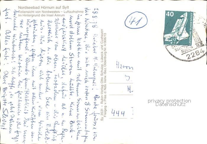 71926705 alte Postkarte Hoernum Sylt Fliegeraufnahme mit Amrum postalisch gelaufen Erhaltung siehe scans KatCode: 11110001054046