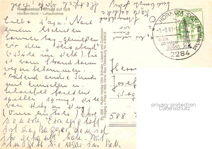 72863294 alte Postkarte Hoernum Sylt Fliegeraufnahme mit Strand postalisch gelaufen Erhaltung siehe scans [LiesaD40] KatCode: 11110001054046