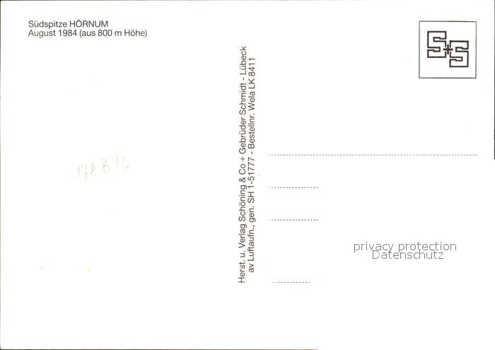 Hoernum Sylt Fliegeraufnahme Suedspitze postalisch nicht gelaufen Erhaltung siehe scans
