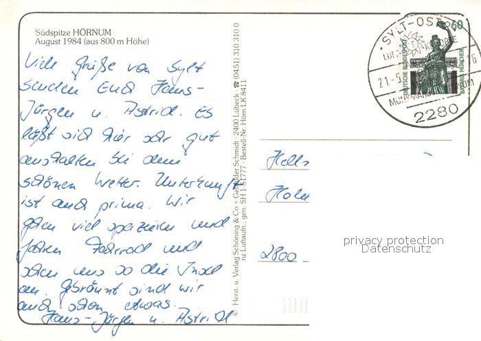 73721332 alte Postkarte Hoernum Sylt Fliegeraufnahme Suedspitze postalisch gelaufen Erhaltung siehe scans [LiesaD40] KatCode: 11110001054046