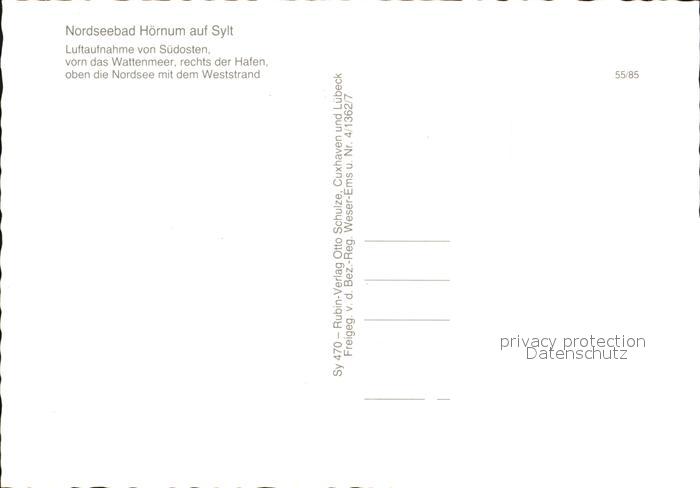 Hoernum Sylt Fliegeraufnahme Wattenmeer Hafen postalisch nicht gelaufen Erhaltung siehe scans