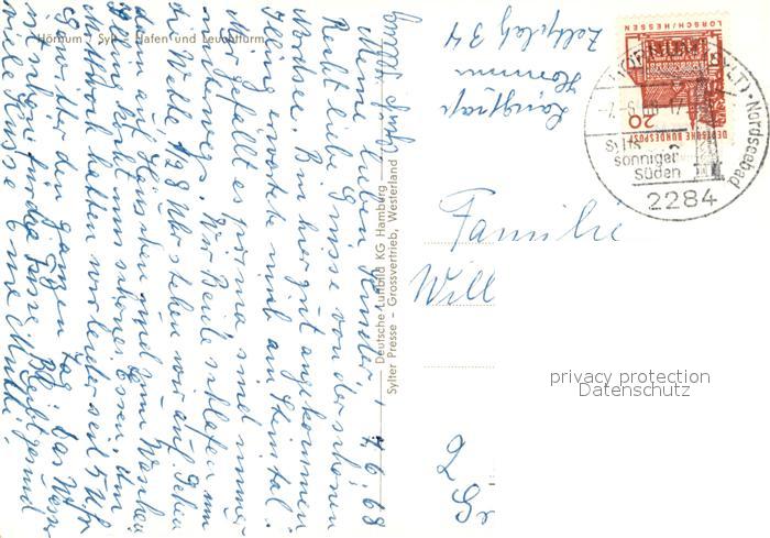 73124797 alte Postkarte Hoernum Sylt Hafen und Leuchtturm Nordseebad Fliegeraufnahme postalisch gelaufen Erhaltung siehe scans [FriedD77] KatCode: 11110001054046