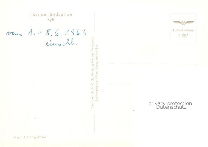 73829463 Hoernum Sylt Suedspitze Fliegeraufnahme postalisch nicht gelaufen Erhaltung siehe scans [FriedD77] KatCode: 11110001054046