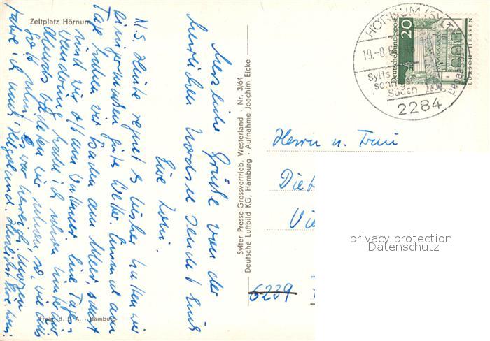 73599996 alte Postkarte Hoernum Sylt Zeltplatz Fliegeraufnahme postalisch gelaufen Erhaltung siehe scans [FriedD77] KatCode: 11110001054046