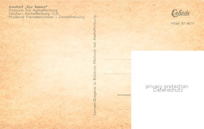 73747494 Hoesbach Gasthof Zur Sonne postalisch nicht gelaufen Erhaltung siehe scans [WerneD78] KatCode: 11110009671130
