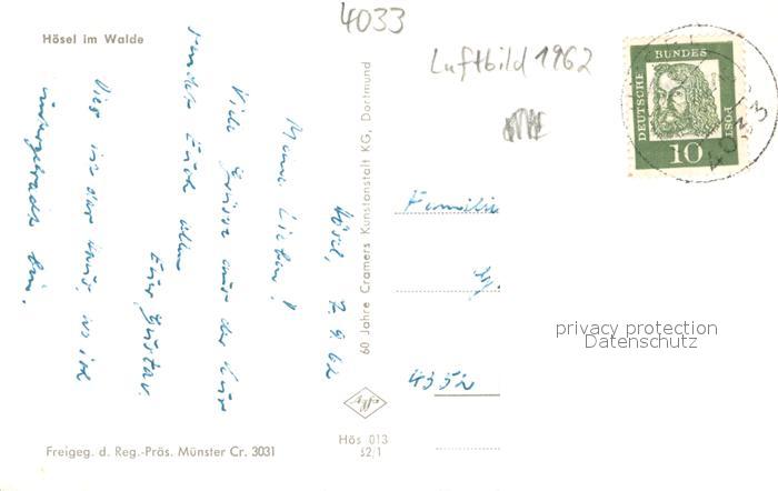 33699485 alte Postkarte Hoesel Fliegeraufnahme postalisch gelaufen Erhaltung siehe scans [WerneD78] KatCode: 11110005158028