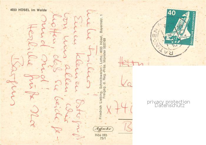 73747609 alte Postkarte Hoesel Fliegeraufnahme postalisch gelaufen Erhaltung siehe scans [WerneD78] KatCode: 11110005158028