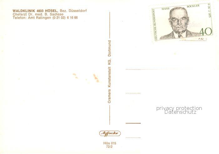 73813494 alte Postkarte Hoesel Ratingen Waldklinik postalisch gelaufen Erhaltung siehe scans [WerneD78] KatCode: 11110005158028