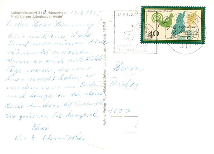 73884734 alte Postkarte Hoesseringen Hardausee Muehlenteich Landtagplatz Jugendherberge postalisch gelaufen Erhaltung siehe scans [FriedD77] KatCode: 11110003360023