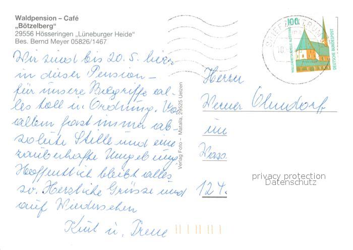 73173855 alte Postkarte Hoesseringen Waldpension Cafe Boetzelberg postalisch gelaufen Erhaltung siehe scans [PaolaD17] KatCode: 11110003360023