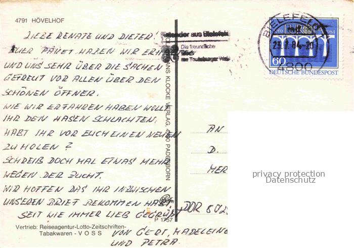 74042961 alte Postkarte Hoevelhof Paderborn NRW In der Senne Fachwerkhaus St Johannes Nepomuk Sennelandschat Einkaufsstrasse Krollbach Schule postalisch gelaufen Erhaltung siehe scans [WerneD78] KatCode: 11110005774024