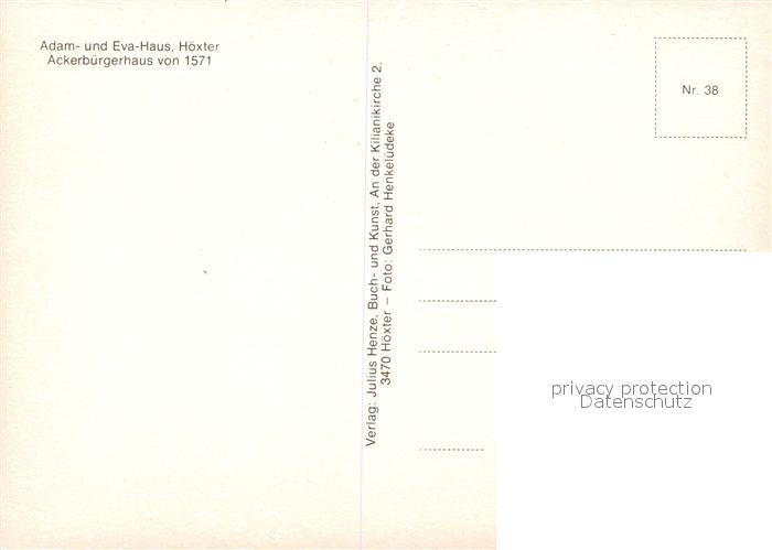 73271428 Hoexter Weser Adam und Eva Haus Ackerburgerhaus postalisch nicht gelaufen Erhaltung siehe scans [KathaD81] KatCode: 11110005762020