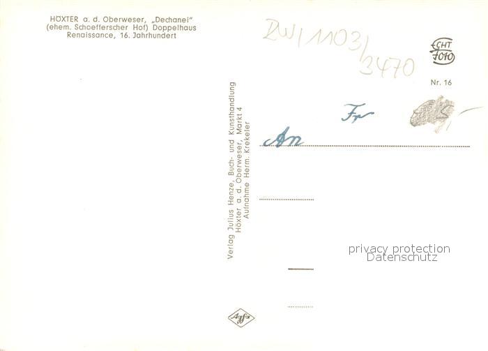 73163115 Hoexter Weser Dechanei Doppelhaus postalisch nicht gelaufen Erhaltung siehe scans [WerneD78] KatCode: 11110005762020
