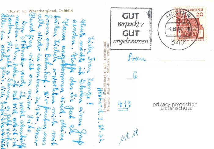 72785553 alte Postkarte Hoexter Weser Fliegeraufnahme postalisch gelaufen Erhaltung siehe scans [AndreD76] KatCode: 11110005762020