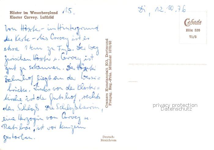 73321897 Hoexter Weser Fliegeraufnahme Kloster Corvey postalisch nicht gelaufen Erhaltung siehe scans [KathaD81] KatCode: 11110005762020