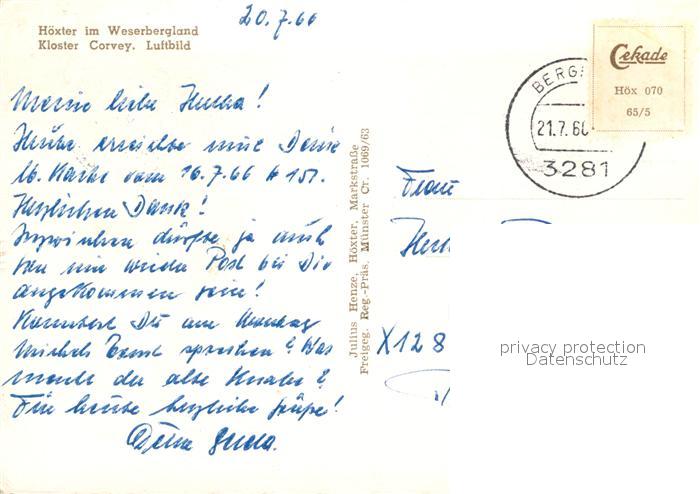 72966775 alte Postkarte Hoexter Weser Fliegeraufnahme Kloster Corvey postalisch gelaufen Erhaltung siehe scans [LiesaD40] KatCode: 11110005762020