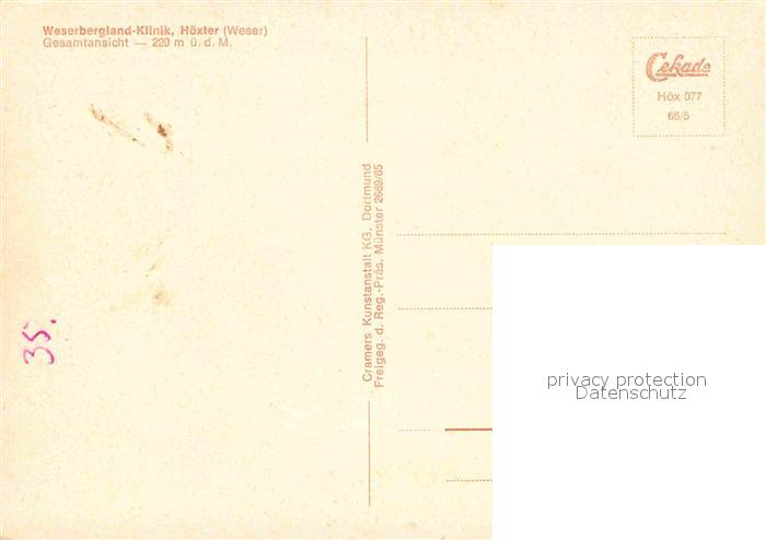 72725619 Hoexter Weser Fliegeraufnahme Weserbergklinik postalisch nicht gelaufen Erhaltung siehe scans [LiesaD40] KatCode: 11110005762020