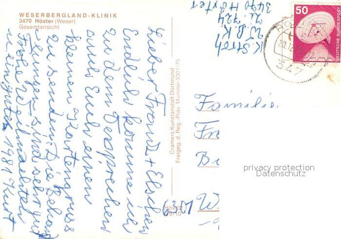 73024092 alte Postkarte Hoexter Weser Fliegeraufnahme Weserbergland Klinik postalisch gelaufen Erhaltung siehe scans [KathaD81] KatCode: 11110005762020