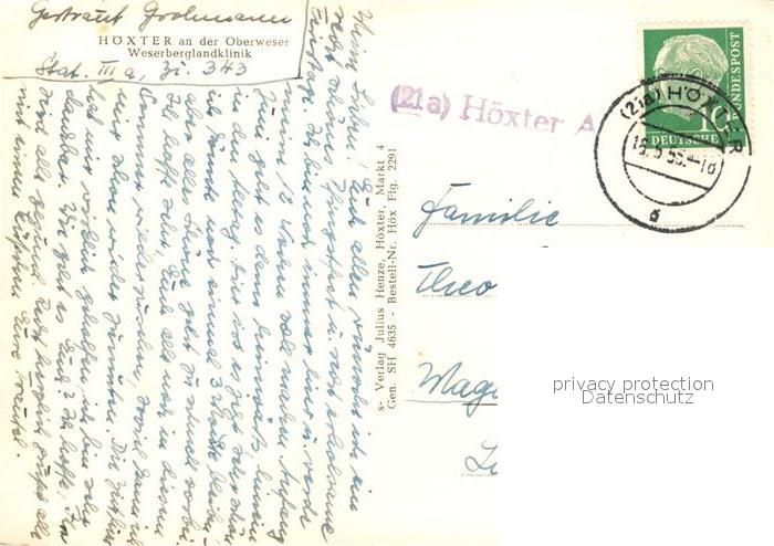 73036462 alte Postkarte Hoexter Weser Fliegeraufnahme Weserberglandklinik postalisch gelaufen Erhaltung siehe scans [KathaD81] KatCode: 11110005762020