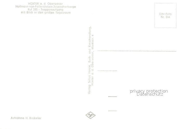73324344 Hoexter Weser Hoffmann von Fallersleben Jugendherberge Treppenaufgang Tagesraum postalisch nicht gelaufen Erhaltung siehe scans [FriedD77] KatCode: 11110005762020
