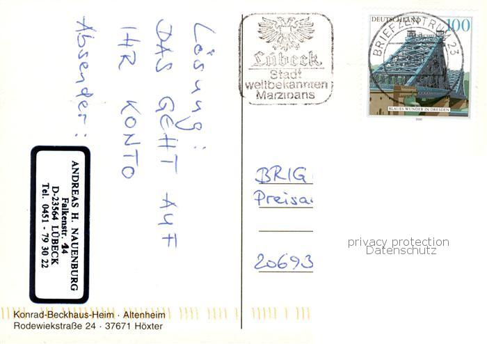 73838014 alte Postkarte Hoexter Weser Konrad Beckhaus Heim postalisch gelaufen Erhaltung siehe scans [FriedD77] KatCode: 11110005762020
