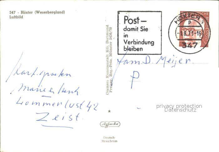 72494774 alte Postkarte Hoexter Weser Luftbild postalisch gelaufen Erhaltung siehe scans KatCode: 11110005762020
