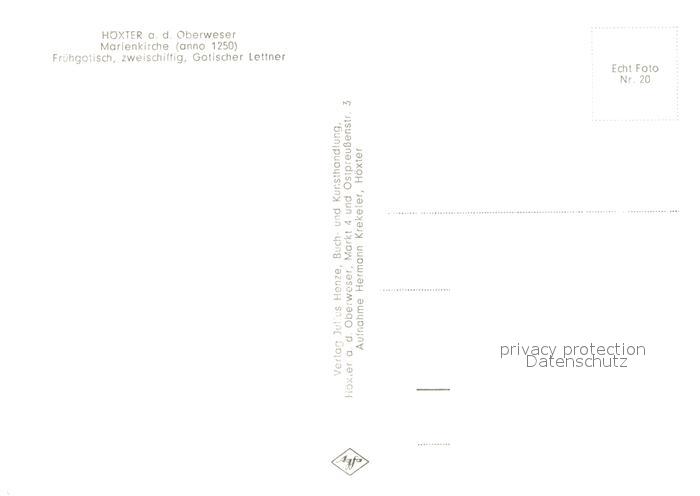 73623720 Hoexter Weser Marienkirche fruehgotisch 2schiffig Gotischer Lettner postalisch nicht gelaufen Erhaltung siehe scans [WerneD78] KatCode: 11110005762020