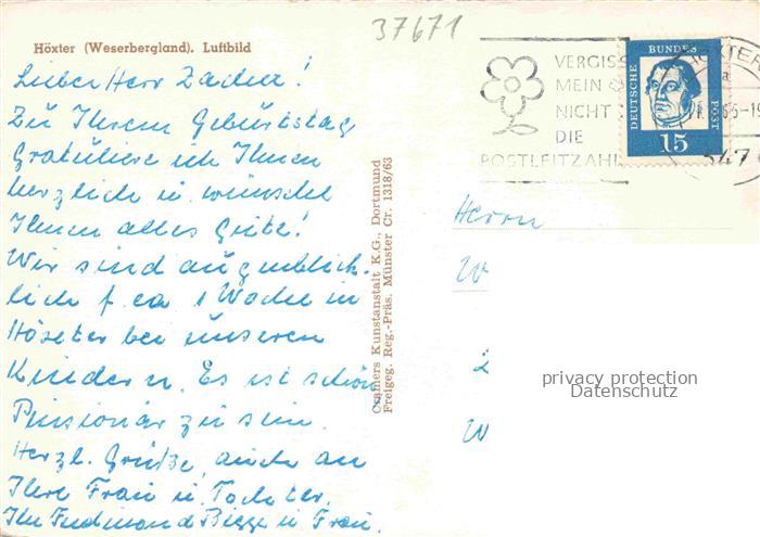 74095360 alte Postkarte Hoexter Weser NRW Fliegeraufnahme postalisch gelaufen Erhaltung siehe scans [WerneD78] KatCode: 11110005762020