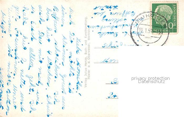 73070104 alte Postkarte Hoexter Weser Panorama Blick von der Wilhelmshoehe Rathaus Schloss Corvey Weserbergland Klinik Dampfer postalisch gelaufen Erhaltung siehe scans [FriedD77] KatCode: 11110005762020