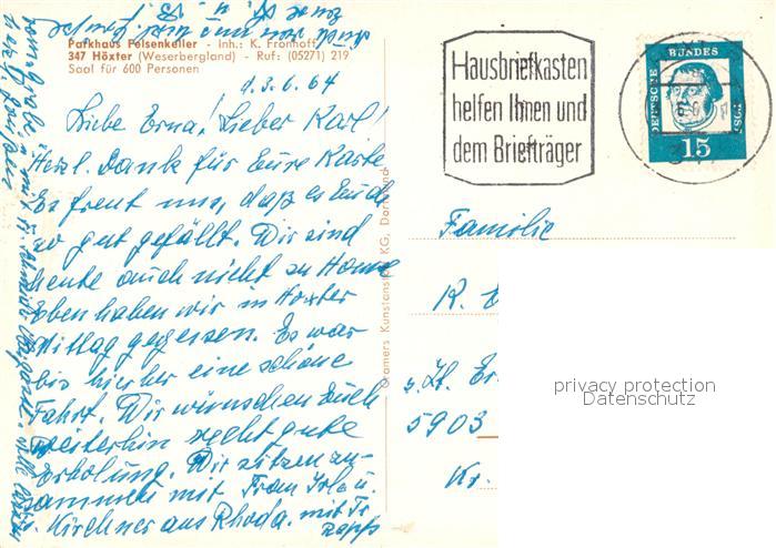 73087812 alte Postkarte Hoexter Weser Parkhaus Felsenkeller postalisch gelaufen Erhaltung siehe scans [KathaD81] KatCode: 11110005762020