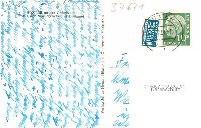 72894272 alte Postkarte Hoexter Weser Portal Nikolaikirche Dechanai postalisch gelaufen Erhaltung siehe scans [PaolaD17] KatCode: 11110005762020