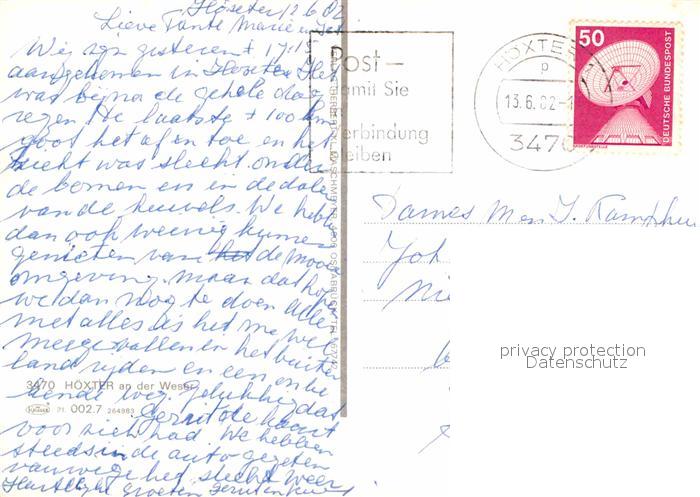 72863739 alte Postkarte Hoexter Weser Rathaus Kilianikirche Weser Faehre Dechanei Marktstrasse Fachwerkhaeuser Weserstrasse postalisch gelaufen Erhaltung siehe scans [FriedD77] KatCode: 11110005762020