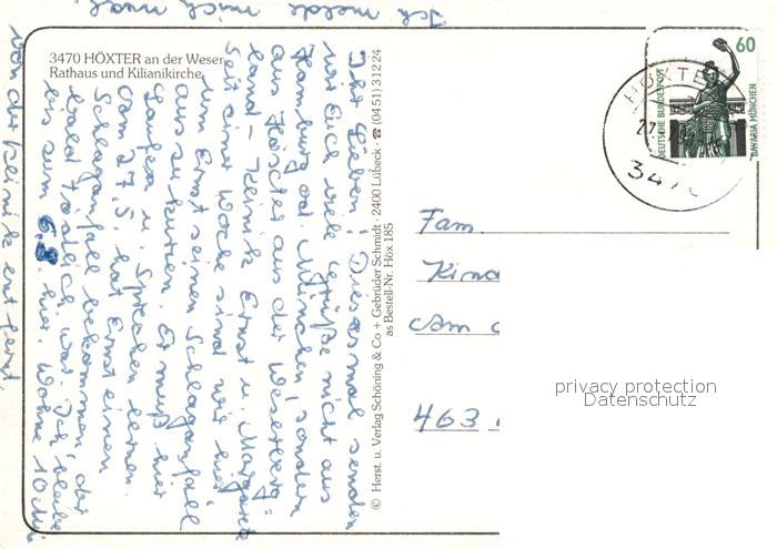 73123157 alte Postkarte Hoexter Weser Rathaus Kiliankirche postalisch gelaufen Erhaltung siehe scans [LiesaD40] KatCode: 11110005762020