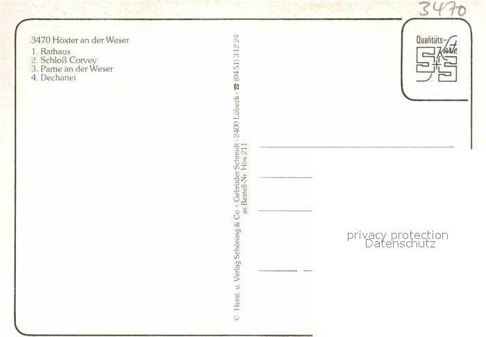 72887540 Hoexter Weser Rathaus Schloss Corvey Weserpartie Dechanei postalisch nicht gelaufen Erhaltung siehe scans [WerneD78] KatCode: 11110005762020