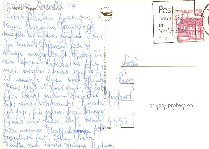 73293423 alte Postkarte Hoexter Weser Schloss Corvey postalisch gelaufen Erhaltung siehe scans [KathaD81] KatCode: 11110005762020
