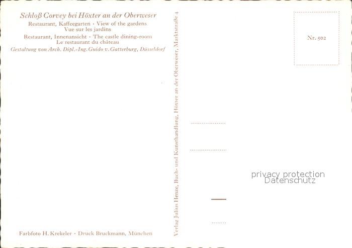 72238809 Hoexter Weser Schloss Corvey postalisch nicht gelaufen Erhaltung siehe scans KatCode: 11110005762020