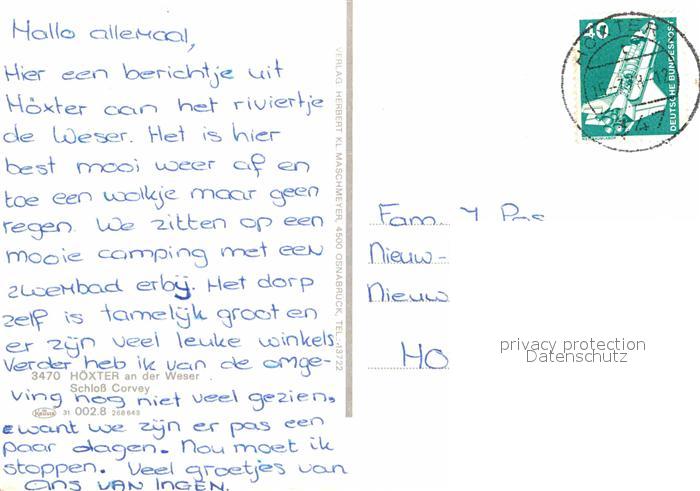 72664496 alte Postkarte Hoexter Weser Schloss Corvey Eingang postalisch gelaufen Erhaltung siehe scans [WerneD78] KatCode: 11110005762020