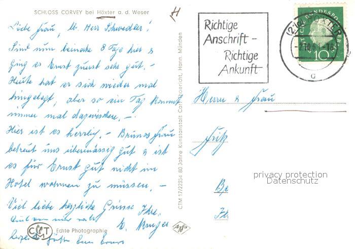 73648095 alte Postkarte Hoexter Weser Schloss Corvey Fliegeraufnahme postalisch gelaufen Erhaltung siehe scans [FriedD77] KatCode: 11110005762020