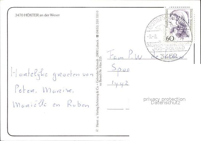 72223226 alte Postkarte Hoexter Weser Schloss Corvey Kilianikirche Dechanei Rathaus postalisch gelaufen Erhaltung siehe scans KatCode: 11110005762020