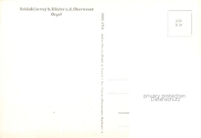 73279021 Hoexter Weser Schloss Corvey Orgel postalisch nicht gelaufen Erhaltung siehe scans [NatalD47] KatCode: 11110005762020