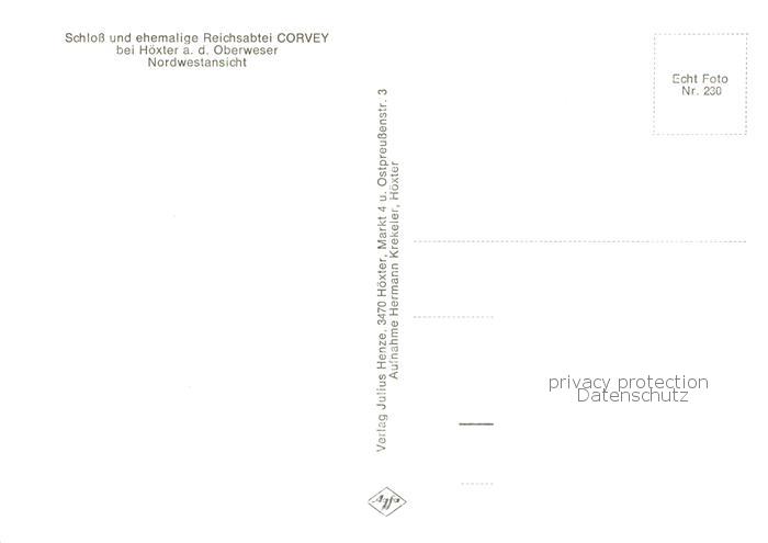 73810180 Hoexter Weser Schloss und ehem Reichsabtei Corvey postalisch nicht gelaufen Erhaltung siehe scans [FriedD77] KatCode: 11110005762020