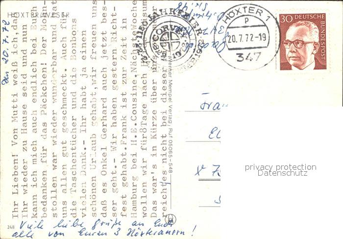 72464204 alte Postkarte Hoexter Weser Schwimmbad Rathaus Weserpartie Schloss Kirche Fachwerkhaus postalisch gelaufen Erhaltung siehe scans KatCode: 11110005762020