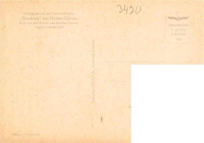 73944008 Hoexter Weser Waldgasthaus Steinkrug Sommerfrische Blick auf die Weser Kloster Corvey postalisch nicht gelaufen Fliegeraufnahme Erhaltung siehe scans [FriedD77] KatCode: 11110005762020