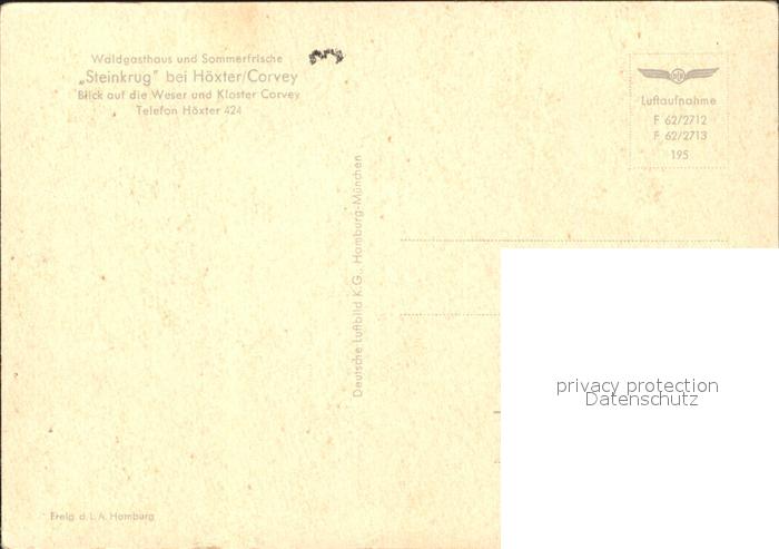 71972585 Hoexter Weser Waldgasthaus Steinkrug postalisch nicht gelaufen Erhaltung siehe scans KatCode: 11110005762020