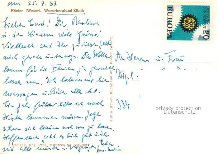 73105460 alte Postkarte Hoexter Weser Weserbergland Klinik Fliegeraufnahme postalisch gelaufen Erhaltung siehe scans [WerneD78] KatCode: 11110005762020