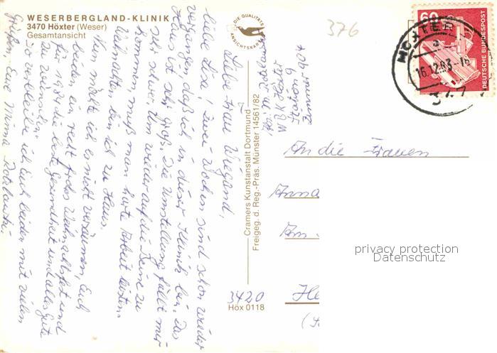 72639135 alte Postkarte Hoexter Weser Weserbergland Klinik Fliegeraufnahme postalisch gelaufen Erhaltung siehe scans [WerneD78] KatCode: 11110005762020