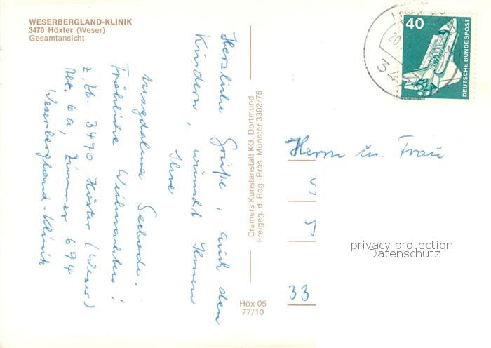 73668441 alte Postkarte Hoexter Weser Weserbergland Klinik Fliegeraufnahme postalisch gelaufen Erhaltung siehe scans [WerneD78] KatCode: 11110005762020