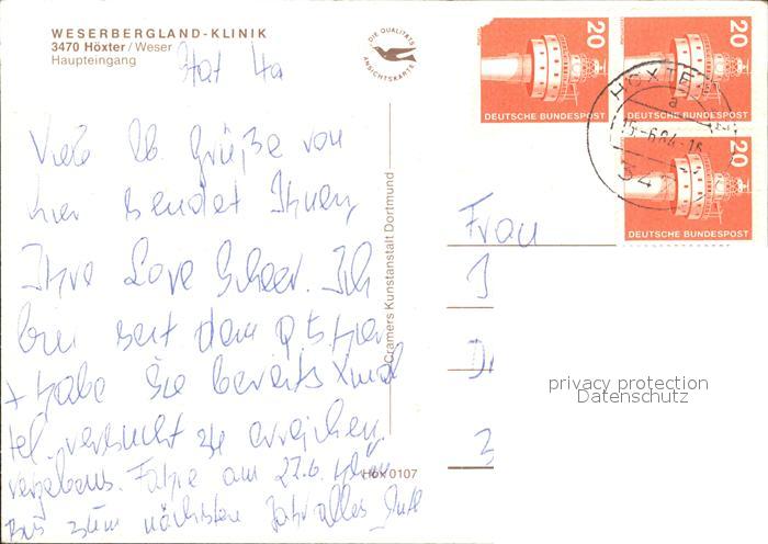 72375856 alte Postkarte Hoexter Weser Weserbergland Klinik Haupteingang postalisch gelaufen Erhaltung siehe scans KatCode: 11110005762020
