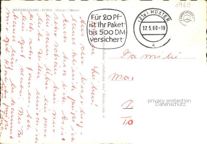 72201016 alte Postkarte Hoexter Weser Weserberglandklinik postalisch gelaufen Erhaltung siehe scans KatCode: 11110005762020